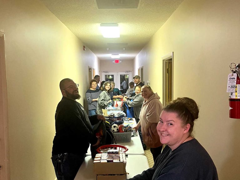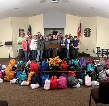 We have just finished packing our backpacks for our 2025 distribution to go to families in the U.S. These backpacks for children contain food, school supplies, toys, personal hygiene items, some clothing, and a pamphlet which describes the Christmas story. They also contain a Bible in each backpack.